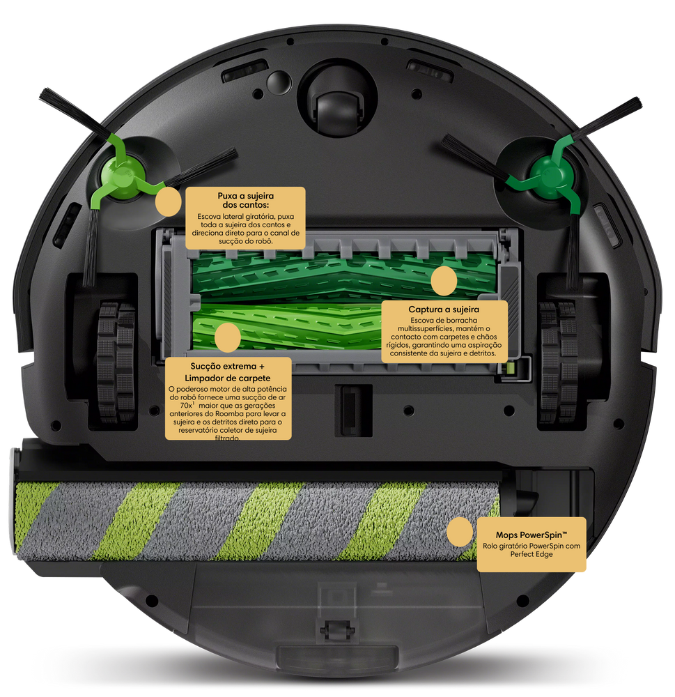 Com mapeamento inteligente via LiDAR ClearView™, Roomba® Combo MAX 705+ Base AutoWash™ navega com precisão e eficiência, otimizando a limpeza em cada canto. Seu sistema de 4 estágios combina escova de cantos, escovas duplas emborrachadas multisuperfície, sucção 70x mais potente¹ e um exclusivo esfregão com retração automática.