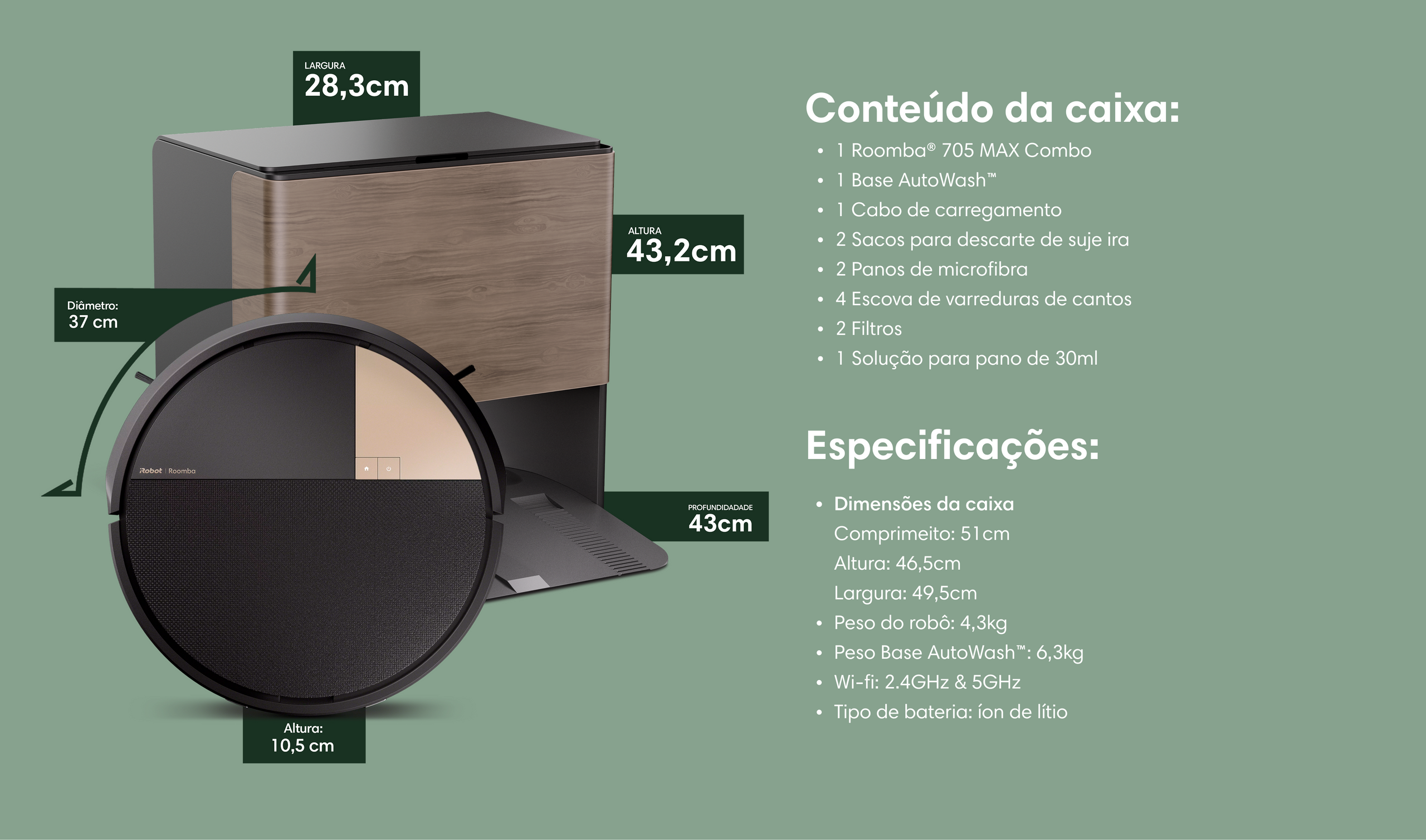 Robô Aspirador, 2 em 1, iRobot - Roomba Max Combo 705+ com Base AutoWash