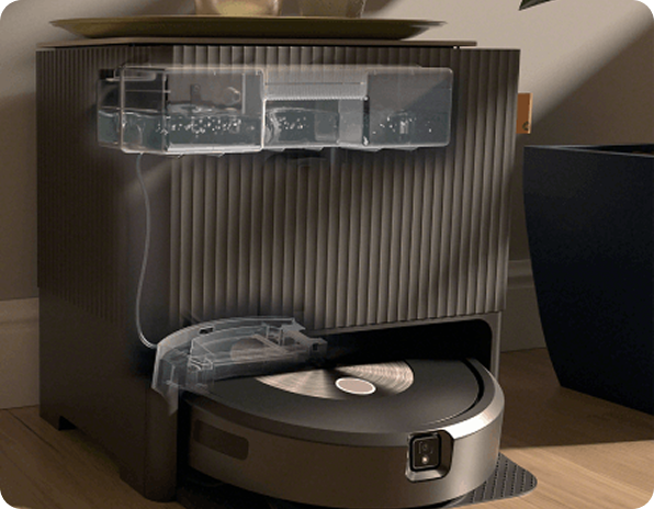 O iRobot OS prioriza a limpeza e orienta seu robô em torno da sujeira, e na Clean Base® esvazia os detritos e reabastece a água automaticamente para limpeza 2 em 1 sem usar as mãos.