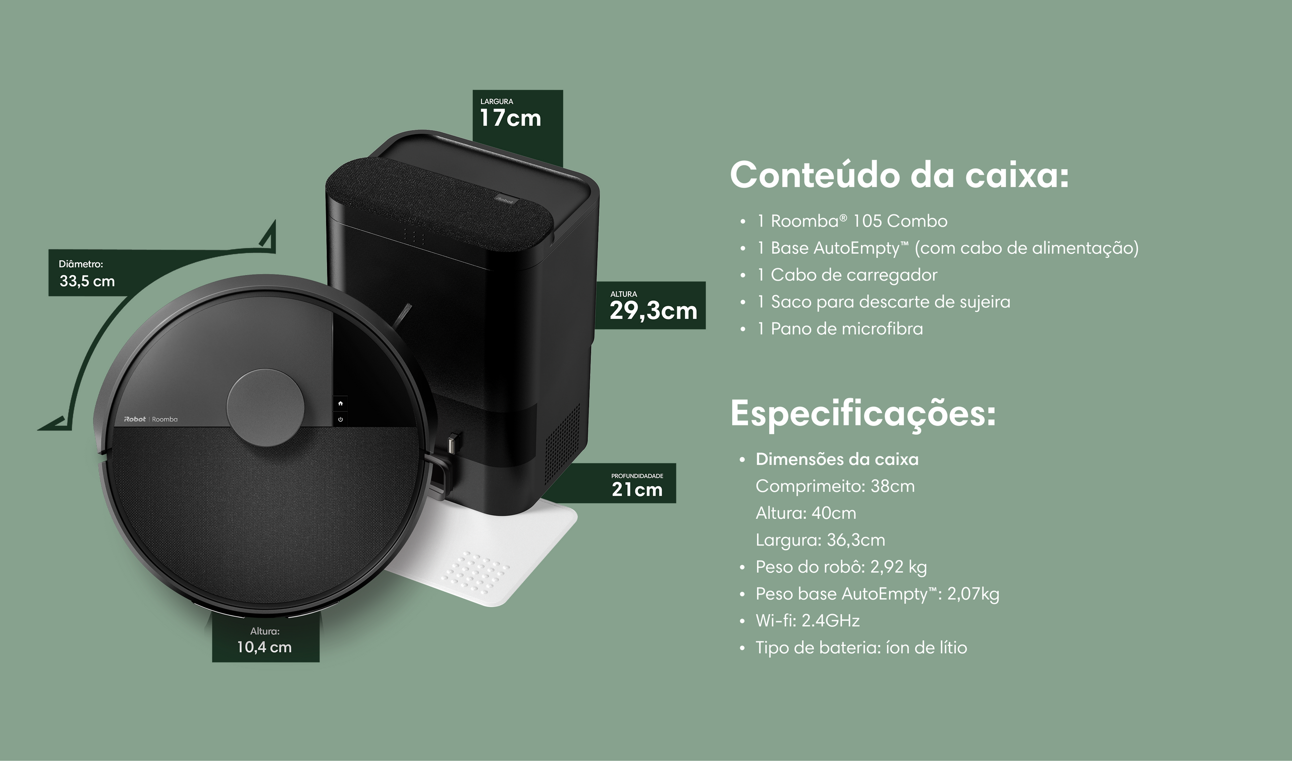 Robô Aspirador Roomba 105+ Combo com Base AutoEmpty Aspira e Passa Pano, Auto Esvaziamento, iRobot