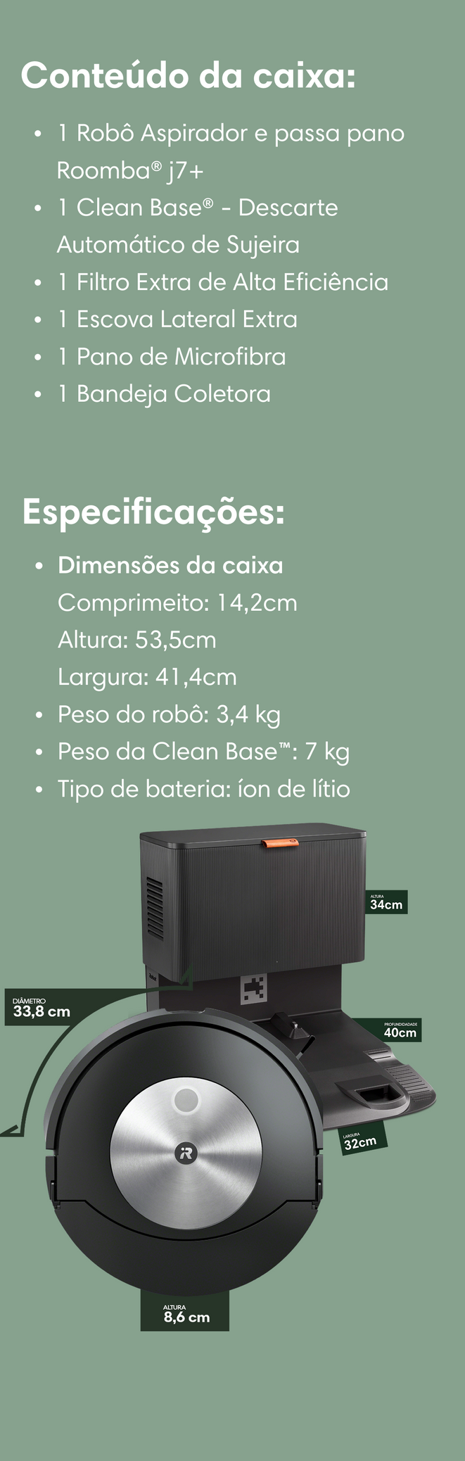 Robô Roomba Combo J7+, 2 em 1, Aspira e Passa Pano da iRobot 127v e 220v