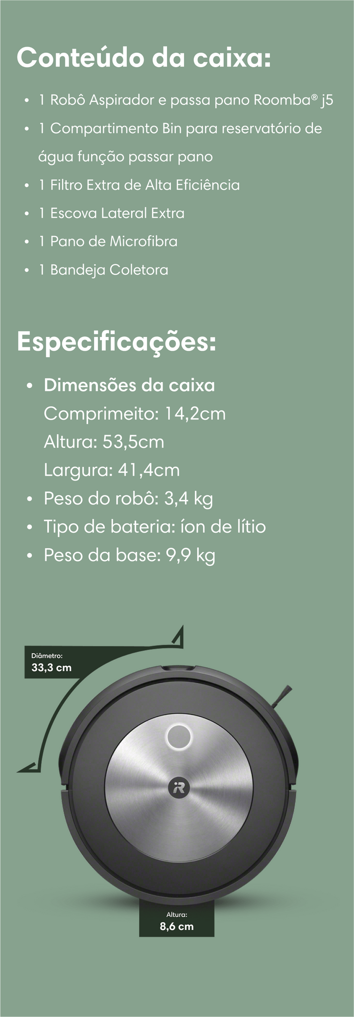 Robô Aspirador Roomba Combo J5, 2 em 1, Aspira e Passa Pano, da iRobot