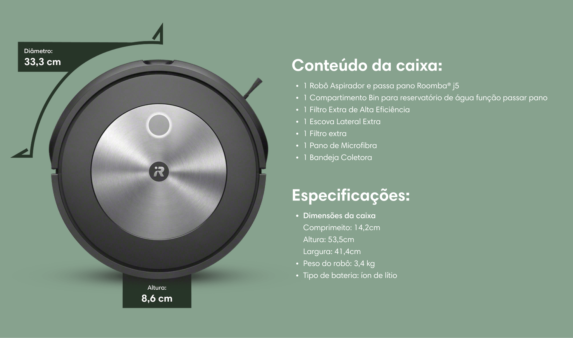 O Roomba J5 possui sensores inteligente capazes de tomar decisões em segundos que facilitam a limpeza da sua casa no dia a dia, dentre elas: