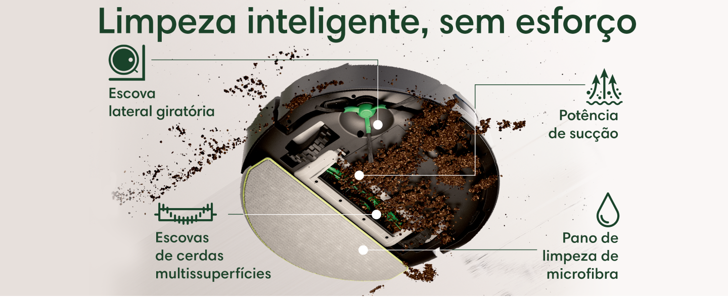 Tudo isso para entregar uma limpeza mais rápida, inteligente e eficiente, sem precisar de nenhuma intervenção.