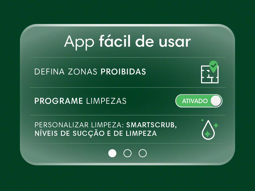 Programe horários, defina zonas proibidas, selecione os cômodos que devem ser limpos e ajuste o nível de sucção, água e intensidade do SmartScrub™ conforme a necessidade de cada ambiente.