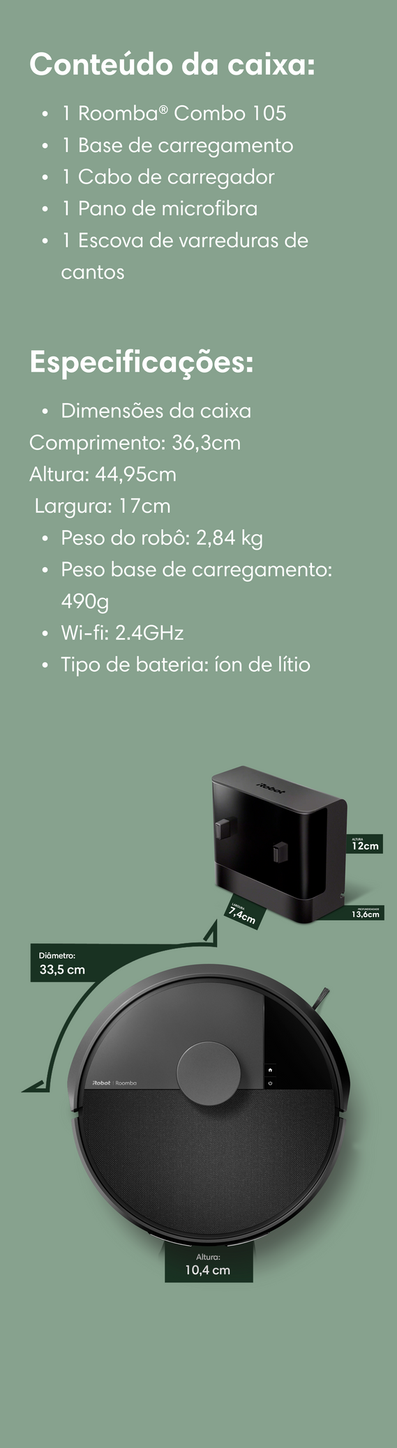 Robô Aspirador Roomba 105 Combo, iRobot, Aspira e Passa Pano